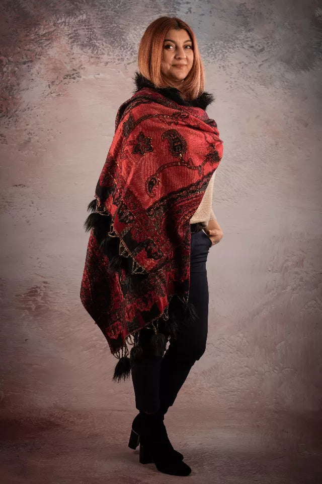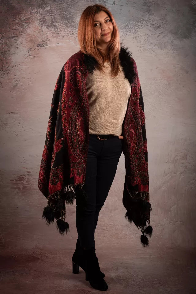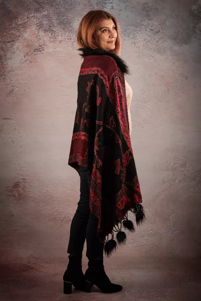 Sal negru-rosu cu broderie hand made si blanita artificiala India
