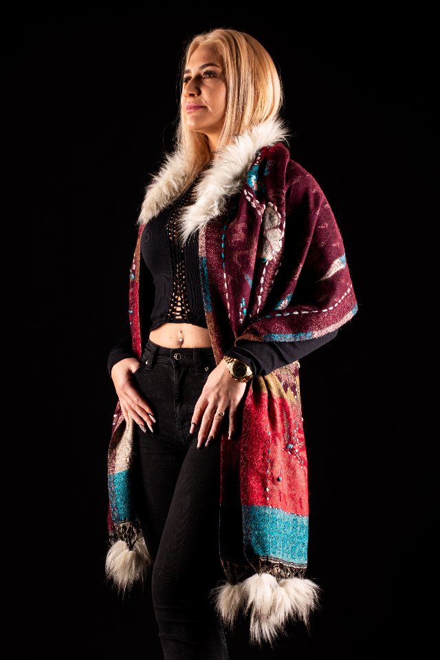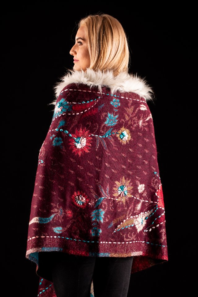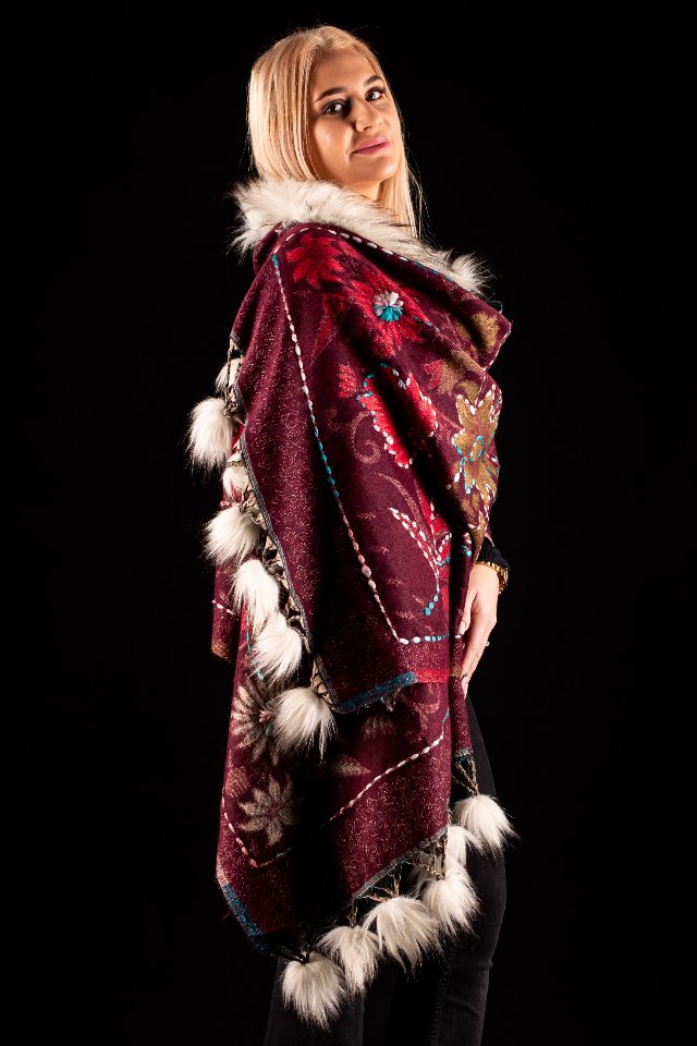 Sal rosu teracota cu broderie hand made si blanita albba India