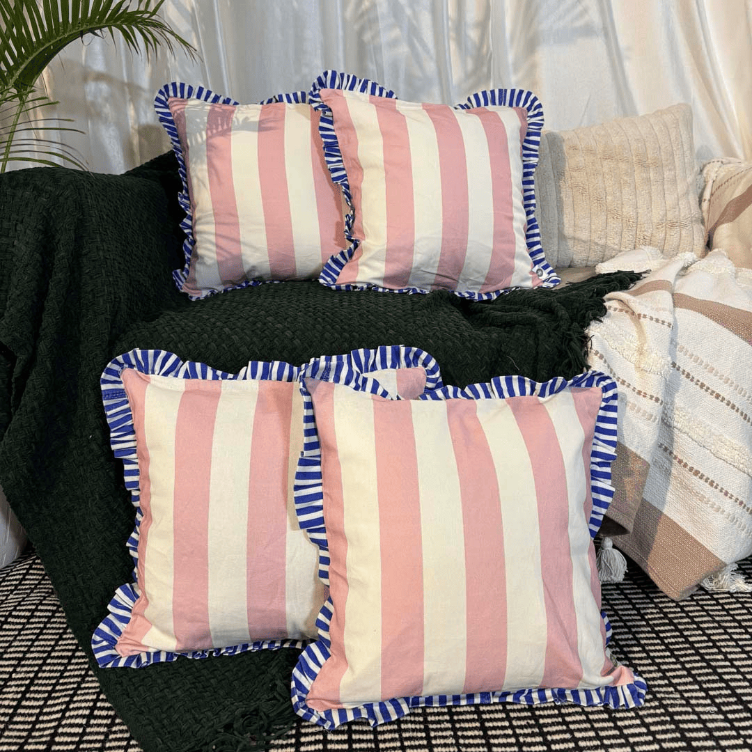 Summer Sorbet Ruffle Cushion Cover – Blush & Cream