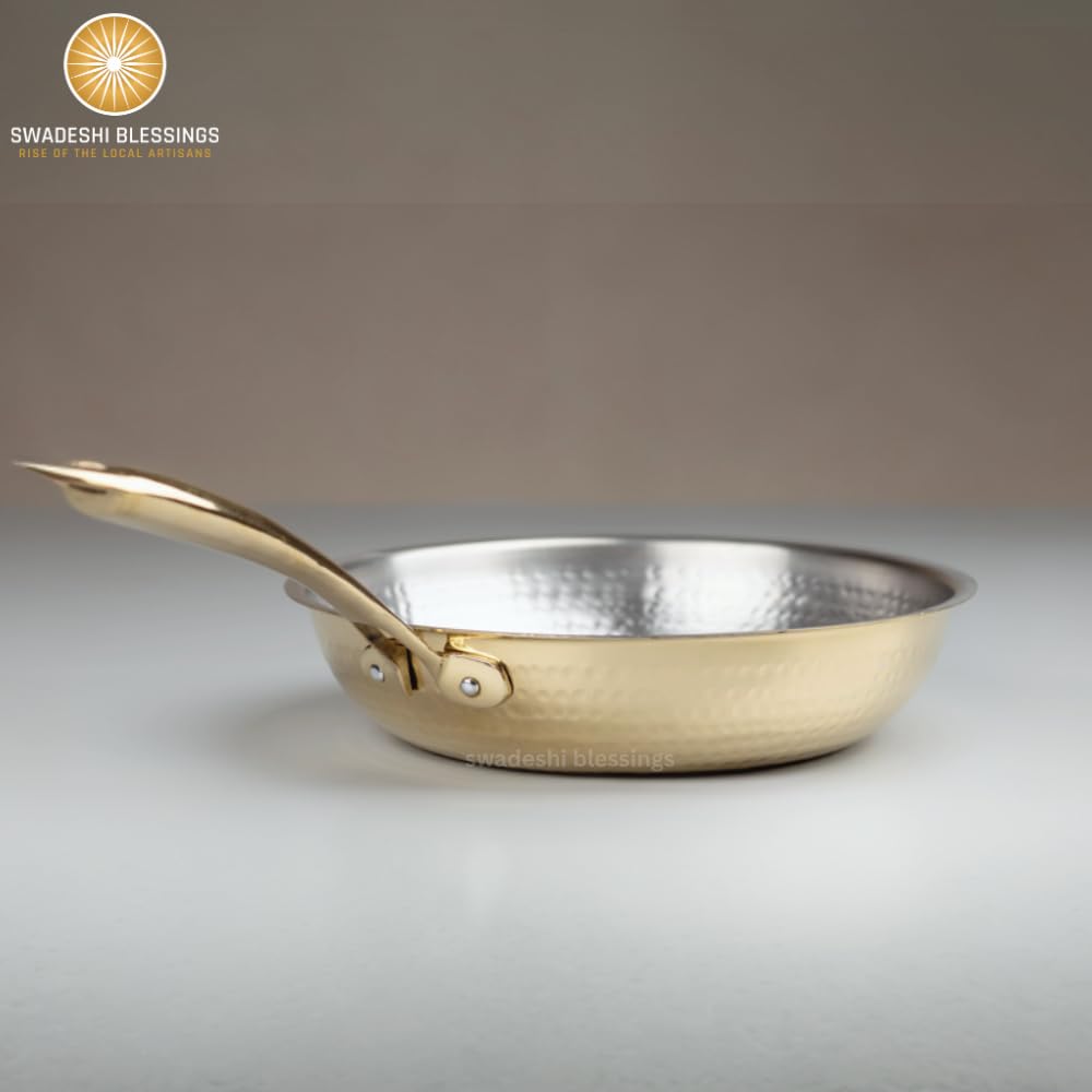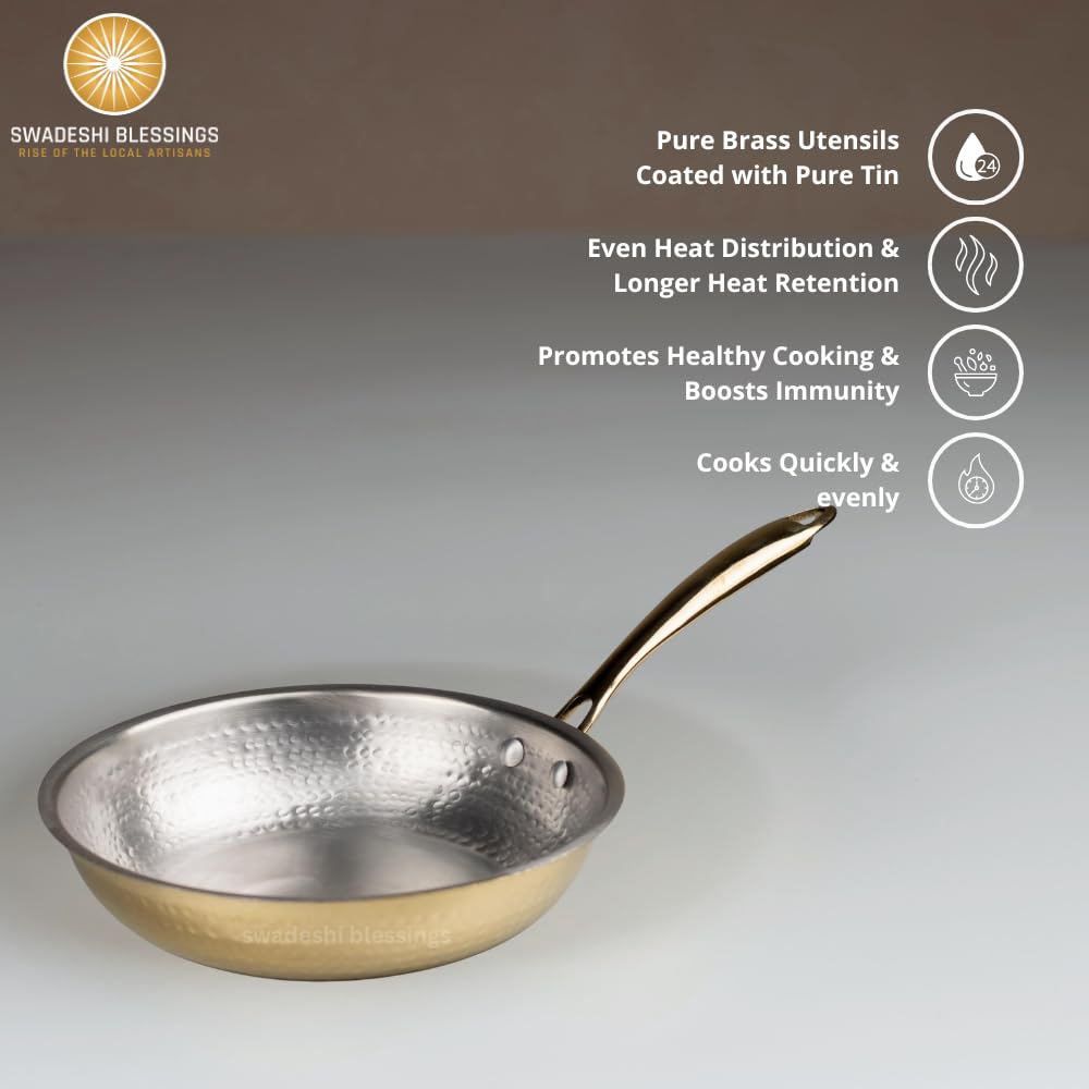 Swadeshi Blessings Exclusive Range Brass Frying Pan for Cooking without Lid/Teflon-Free/Naturally Non-Stick Brass Utensils with Tin Coating