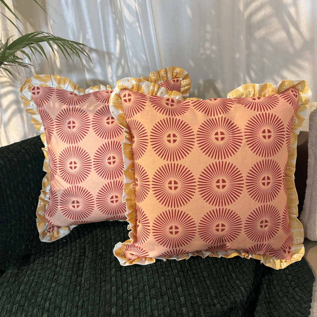 Terracotta Sunburst Ruffle Cushion Cover – Rust & Gold