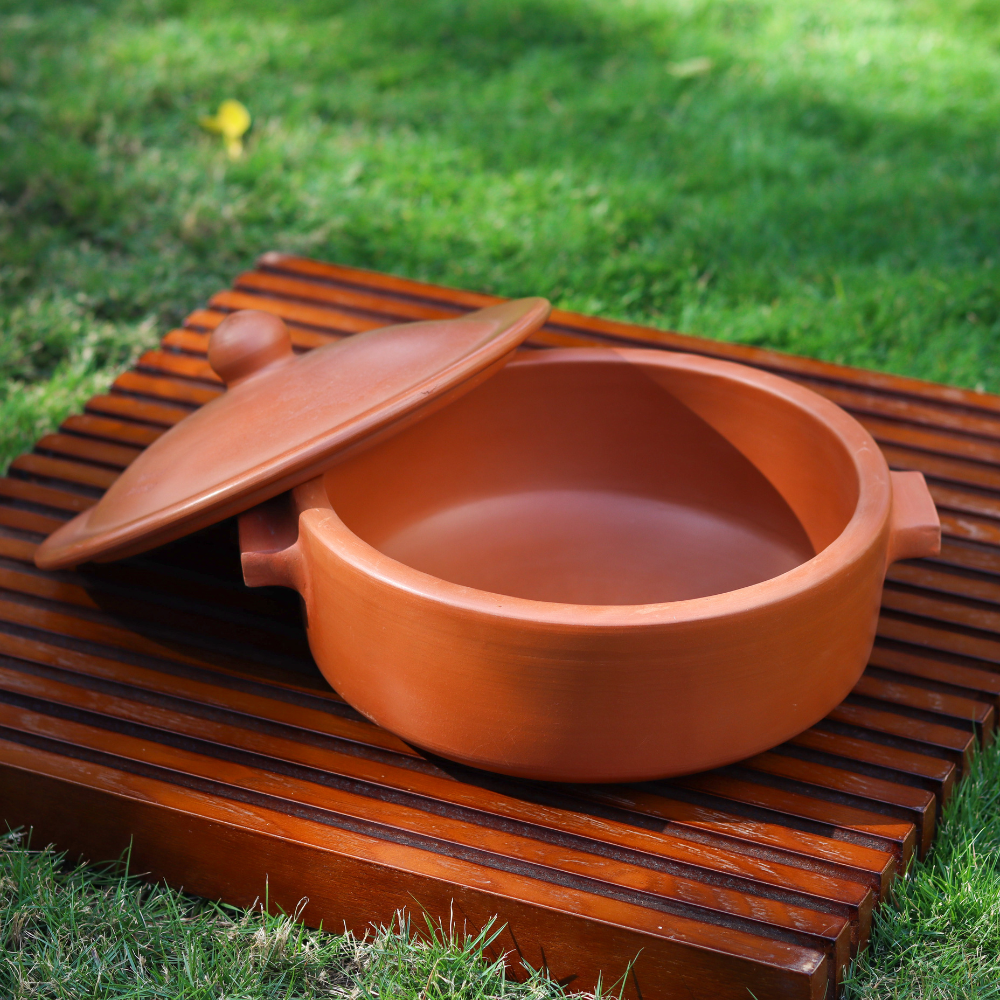 Unglazed Clay Handi / Earthen Hot Case / Clay Pots Combo for Cooking & Serving with Lids – 2L & 2.5L (Red) (Natural Firing Shade & Mirror Shine) + FREE Ash for Cleaning