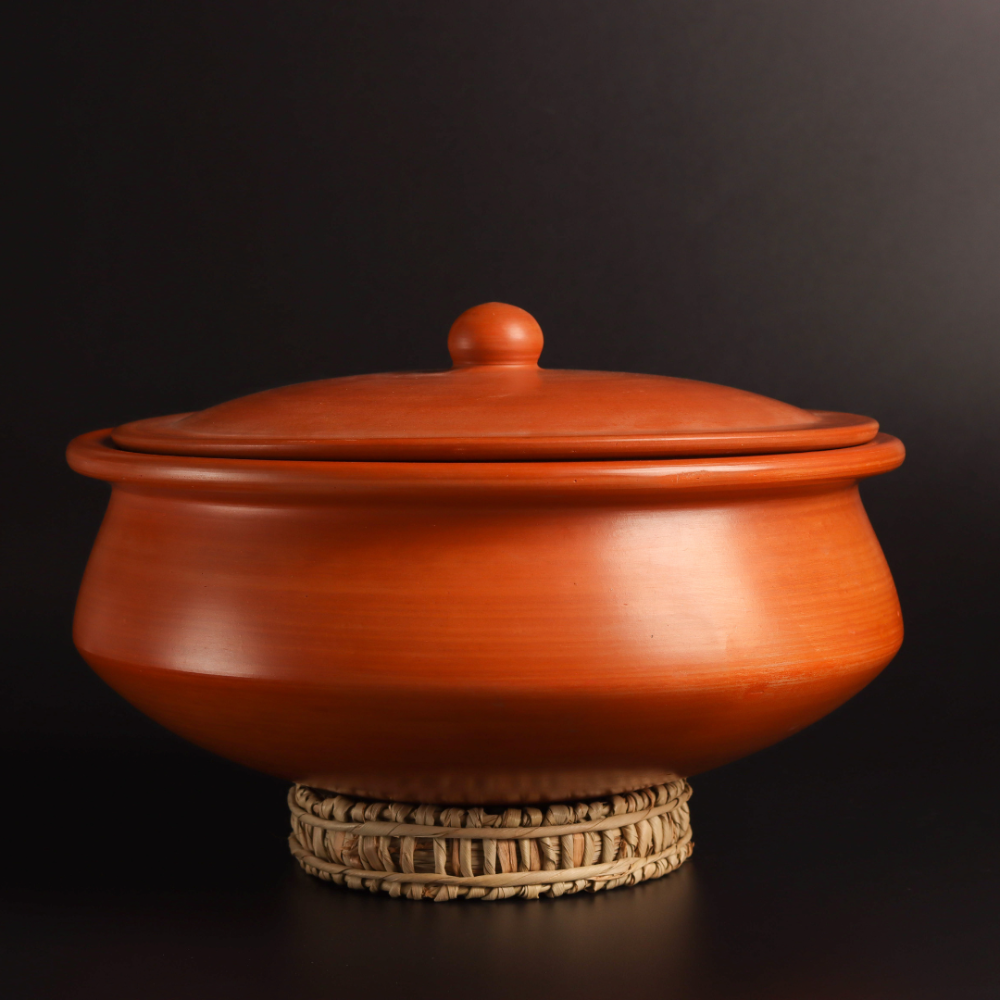 Unglazed Clay Handi / Earthen Kadai / Clay Pots Combo for Cooking & Serving with Lids – 2.8L Black & 2.8L Red (Natural Firing Shade & Mirror Shine) + FREE Ash for Cleaning